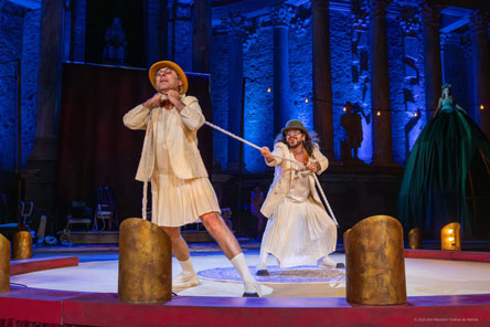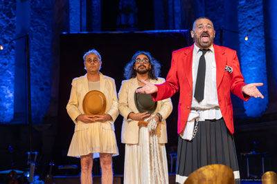 Los apartes de los actores, principalmente del maestro de ceremonias, interpretado por Pepón Nieto, en “Los hermanos”, de Terencio, rompen la cuarta pared y nos invitan a integrarnos en el juego escénico.
