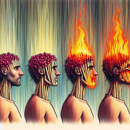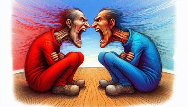 Como la prioridad es no ser humillado, y para no ser humillado necesitas vencer, te radicalizas. El otro se radicaliza a su vez, siguiendo el mismo proceso, y los dos a la postra os radicalizáis. Ambos teméis no tener habilidades de oratoria suficientes para imponeros en una discusión noble y serena. Ese es el miedo. El miedo a que no sean suficientes tus argumentos y que el otro te venza.